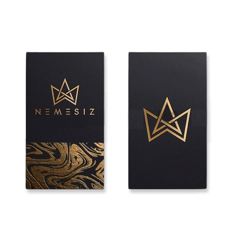 Card visit ép kim là mẫu danh thiếp sang trọng, sử dụng kĩ thuật ép kim nhũ vàng, bạc, đồng để tạo hiệu ứng bắt sáng cho ấn phẩm. Đây là loại danh thiếp được ưa chuộng sử dụng vì vẻ ngoài tinh tế và cao cấp của chúng.